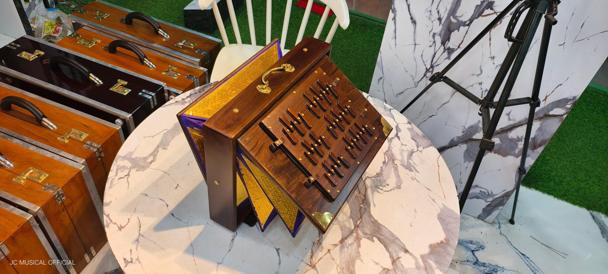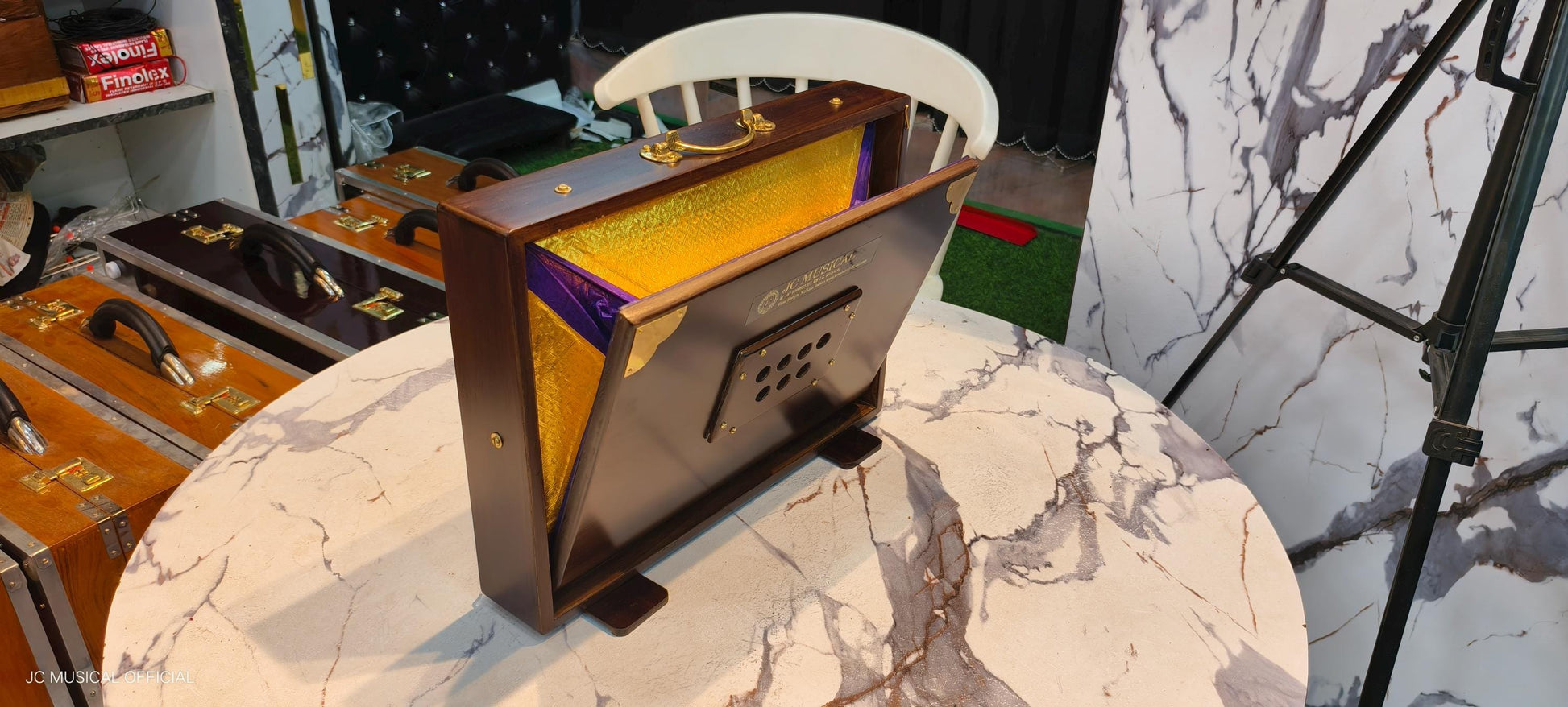 3-Line Shruti Box: Light Brown, Premium Quality, Teakwood