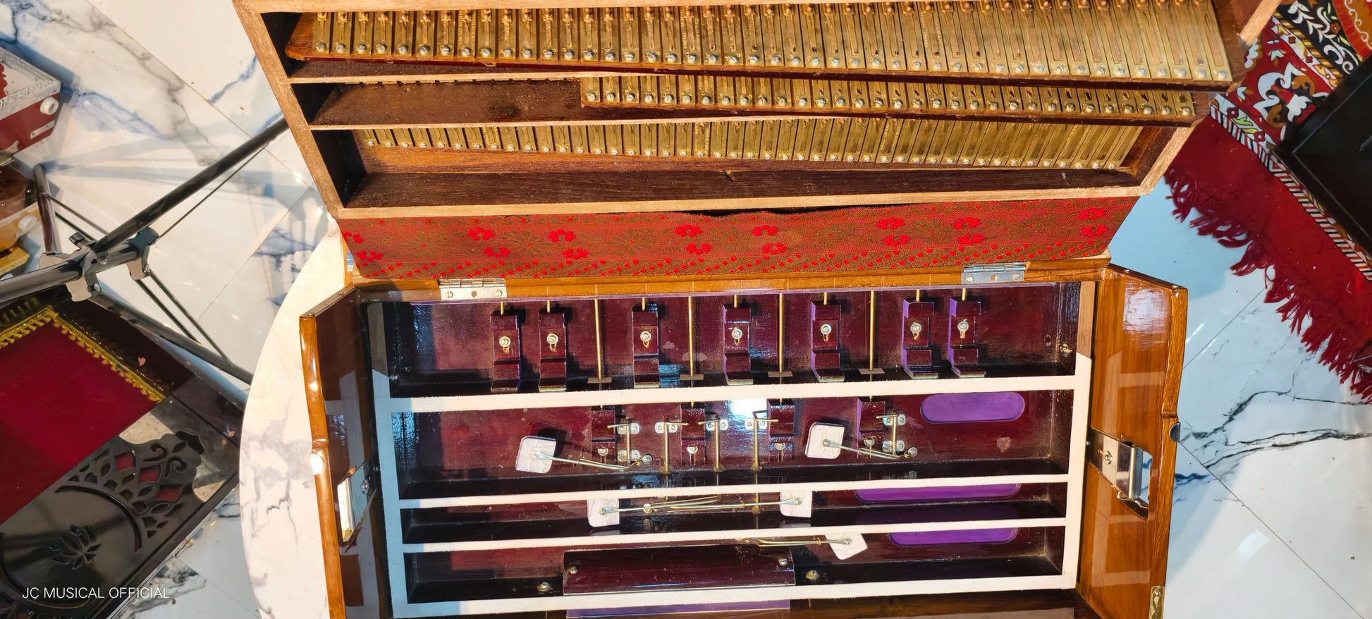 3line 9scale changer wooden glossy finish professional quality with golden brass decoration