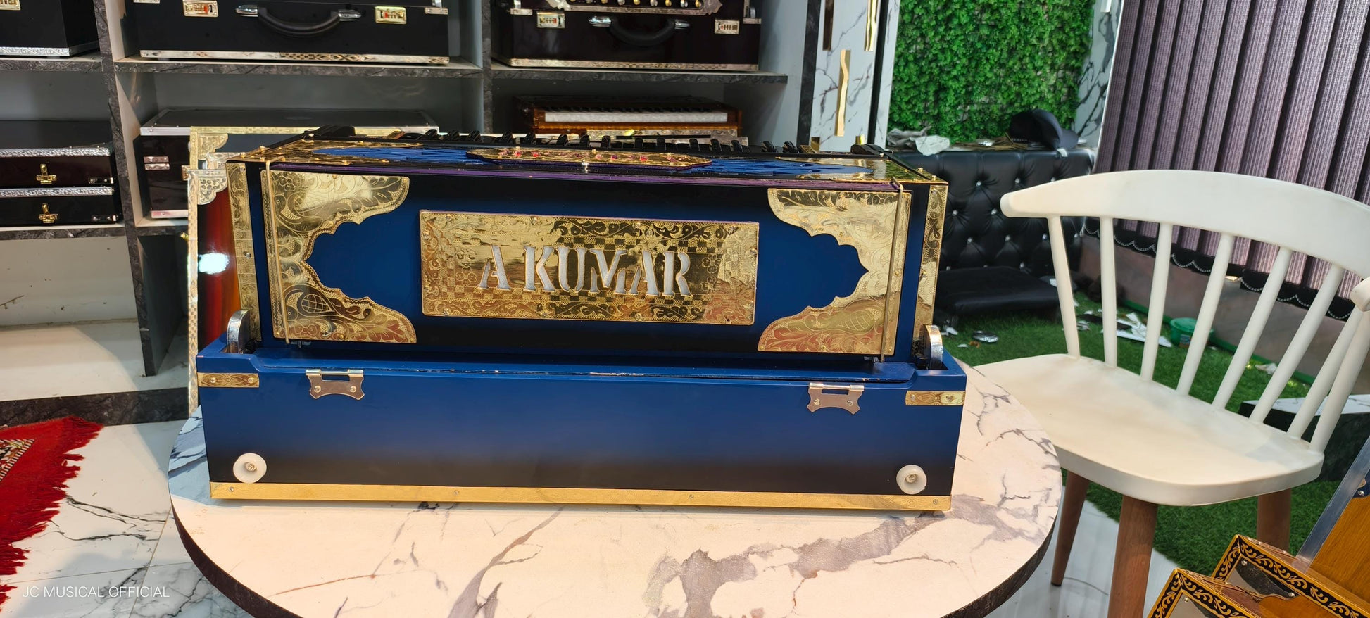 3LINE 9SCALE Harmonium: Blue Black, Golden Decoration, Custom Nameplate