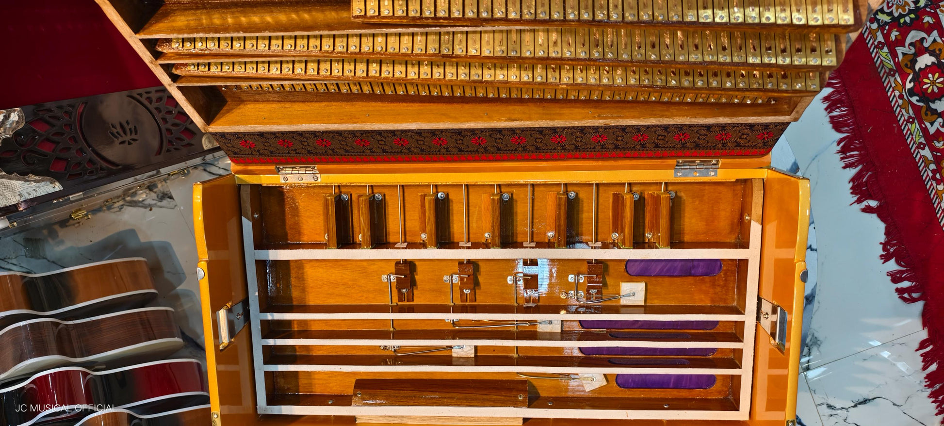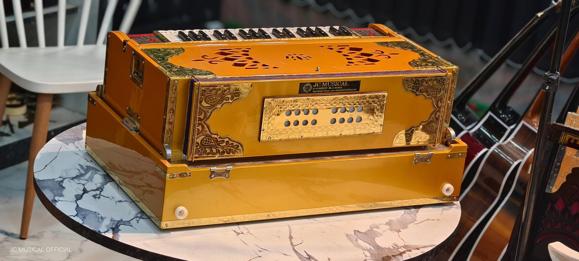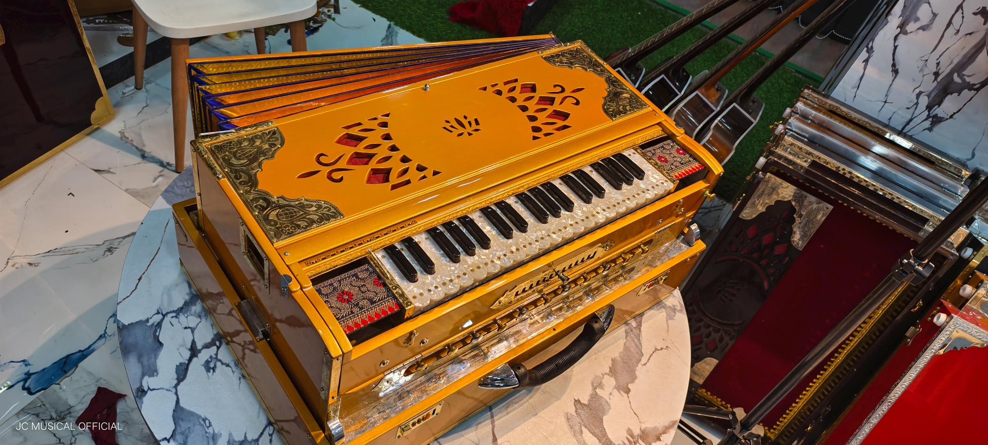 -A harmonium, also called a "melodeon", "reed organ" or "pump organ", is a keyboard instrument that is a lot like an organ. It makes sound by blowing air through reeds, which are tuned to different pitches to make musical notes.This is joined to a mechanism which operates a bellows, sending air to the reeds.