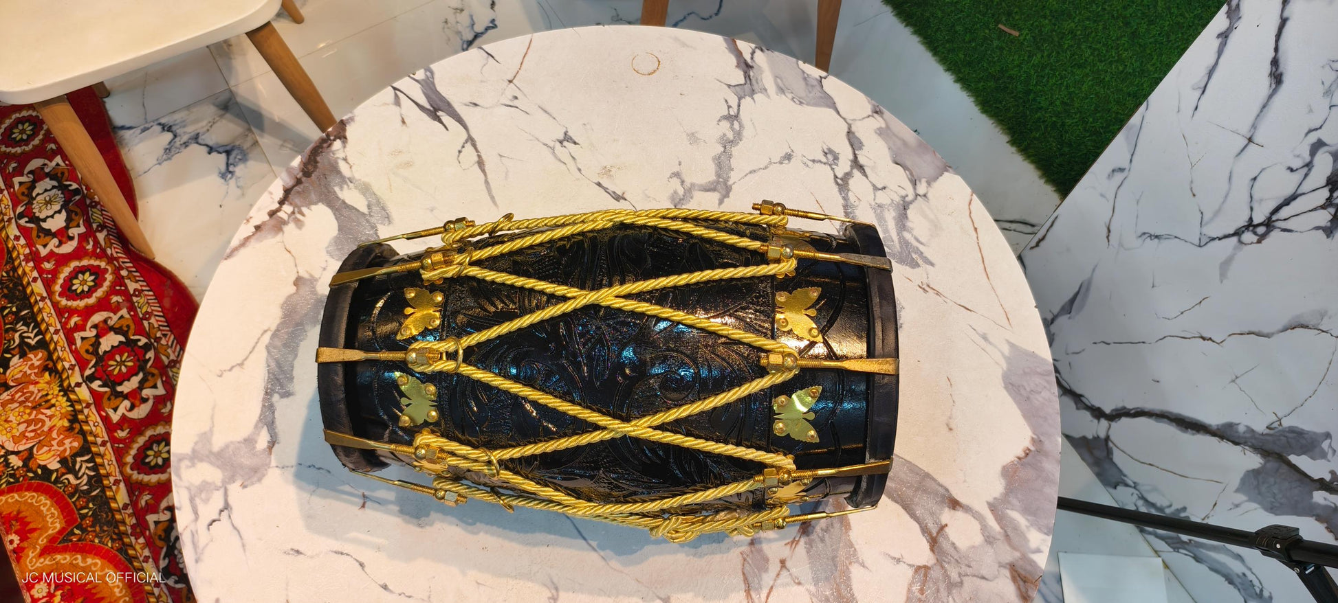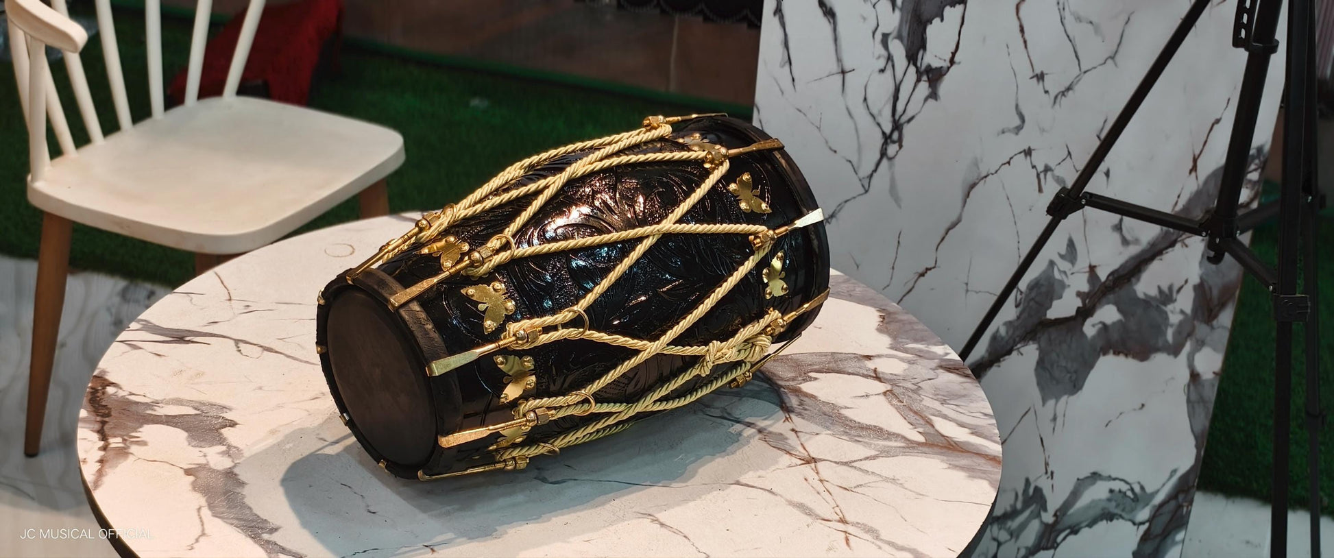 Professional Sheesham Wood Dholak: Black Glossy Finish, Nut Bolt Tuning