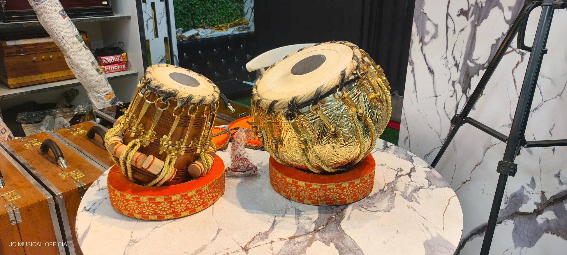 Professional Tabla Set: Brass Dagga, Sheesham Wood