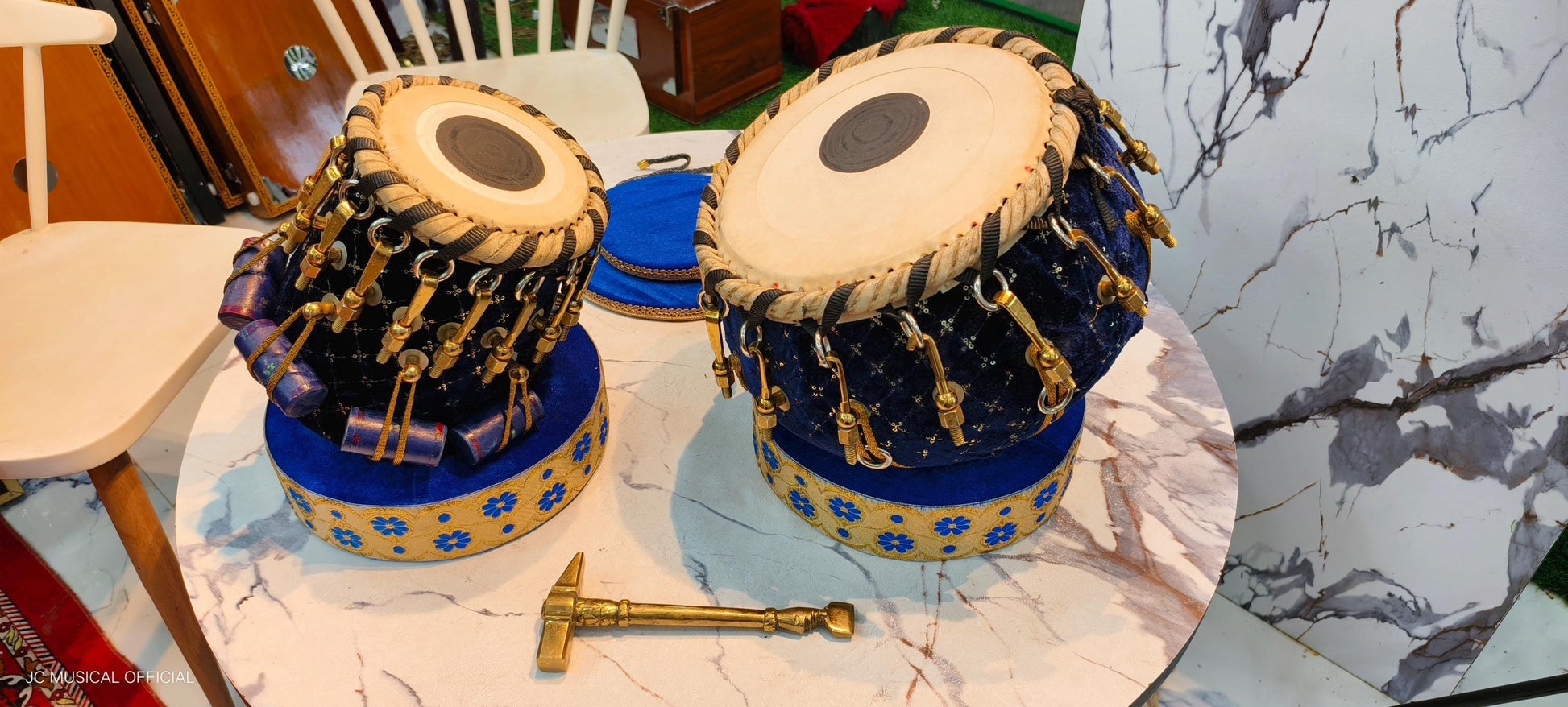 JC MUSICAL Professional Brass Bayan & Dayan Table Set Percussion Musical Instrument with Carry Bag & Cushion MADE BY BRASS AND WOOD.