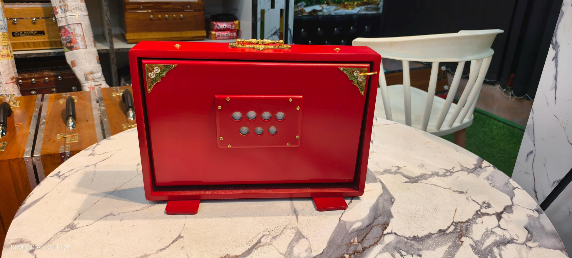 1OCTEVE 1LINE SHRUTI BOX MEDIUM SIZE WITH PREMIUM RED MAT FINISH