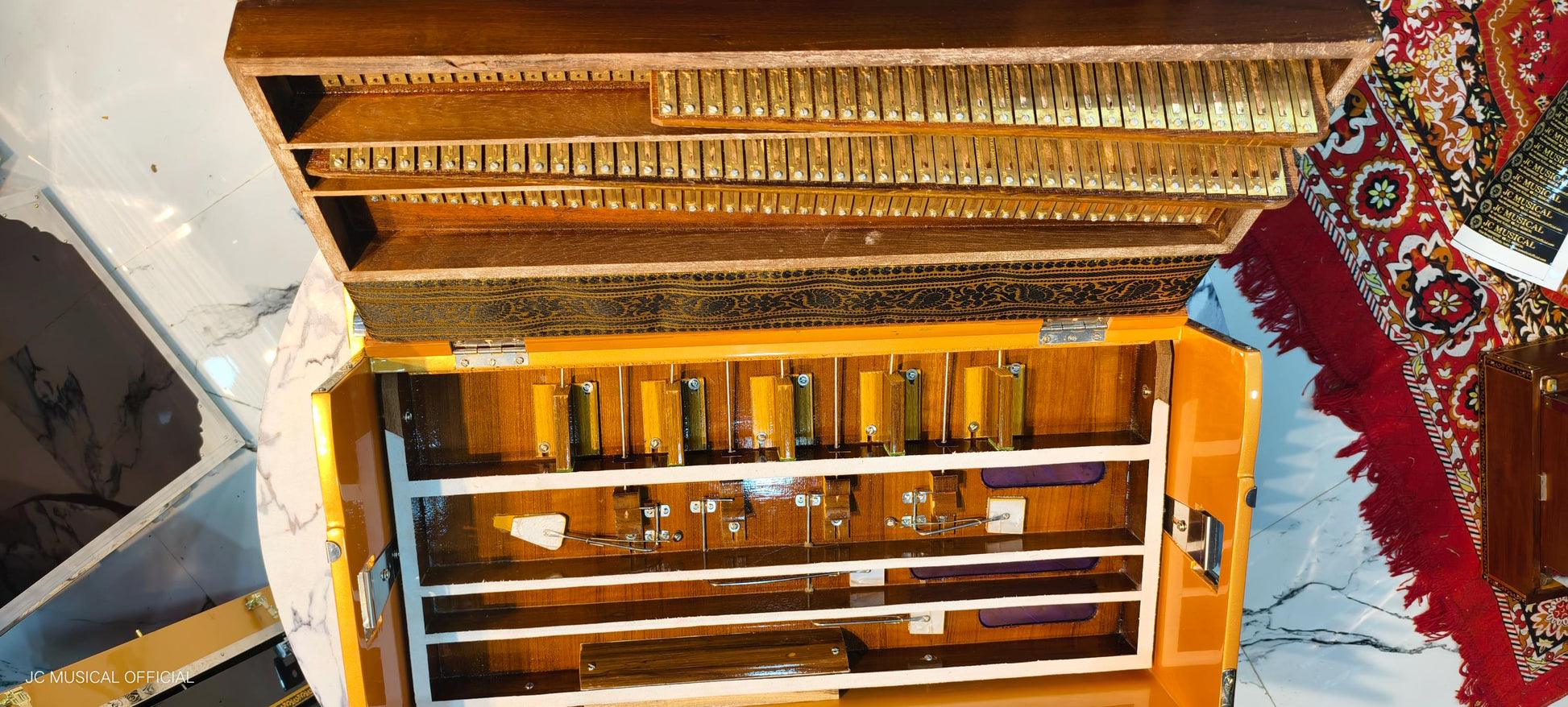 Scale changer harmonium 3line 9scale metalic golden with entic red keys