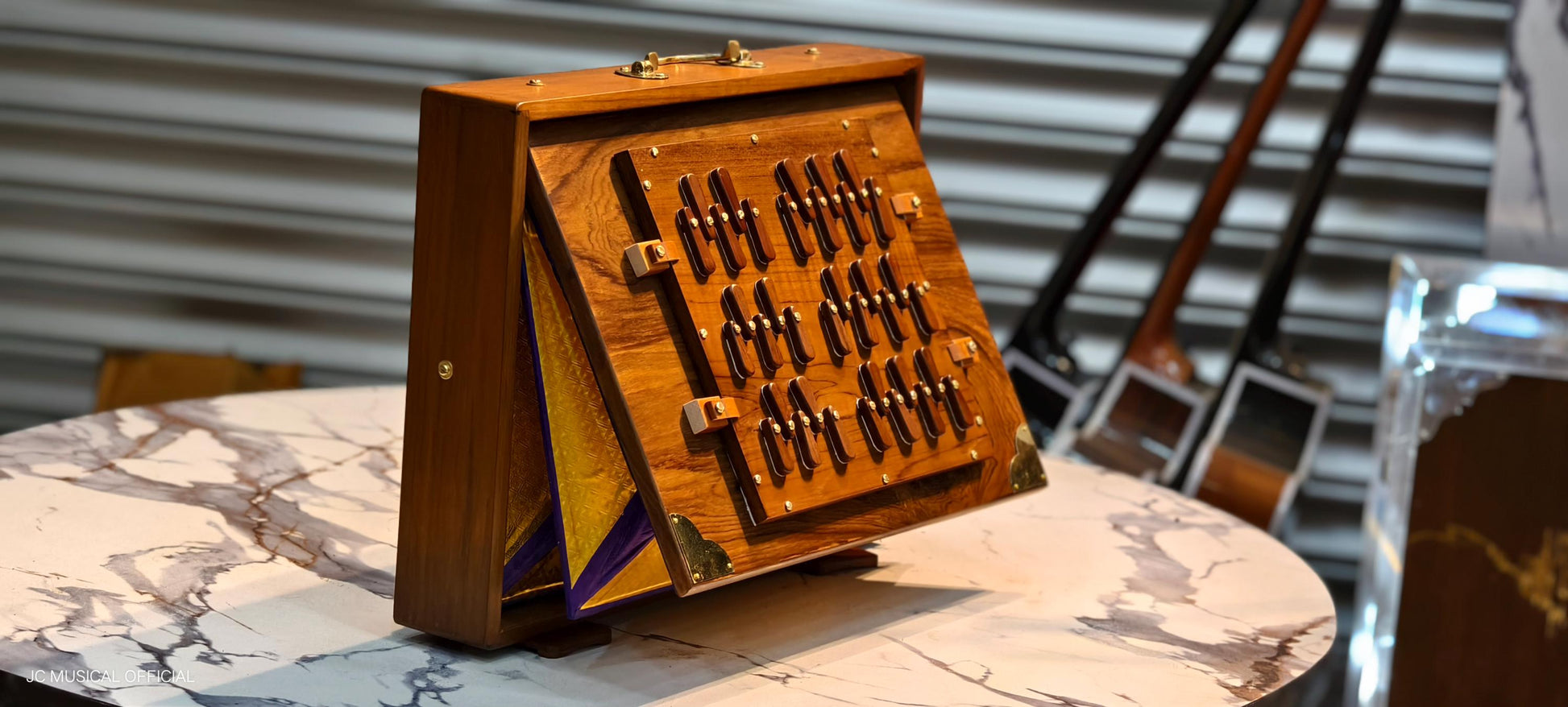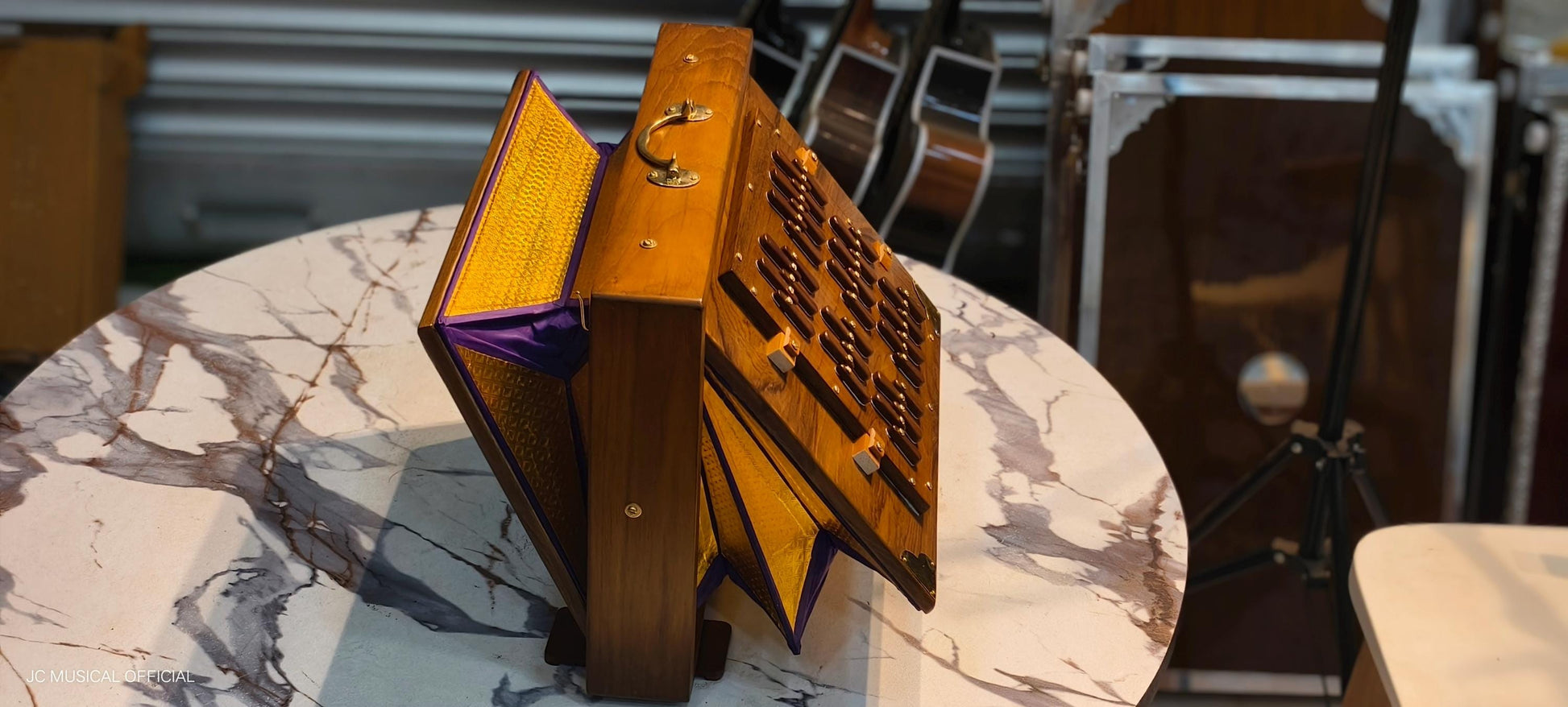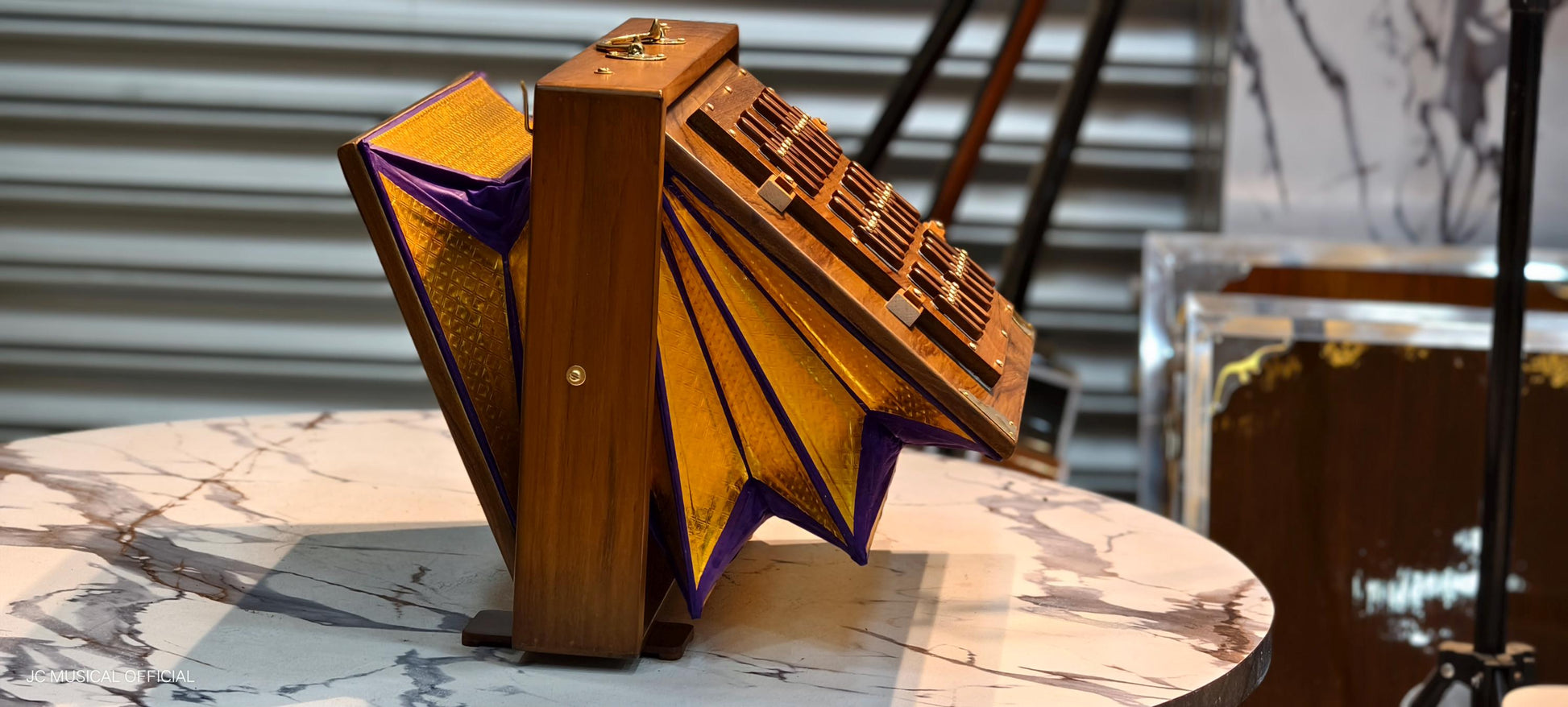 SHRUTI BOX 3LINE WOODEN mat finish three octeve with wooden accessories and rich golden decoration