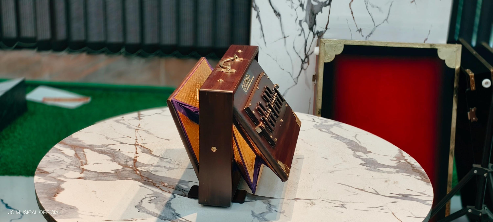 Shruti Box: Medium Size, Deep Brown, Golden Brass Decoration/ LOWER OCTEVE C3-C4 NOTES